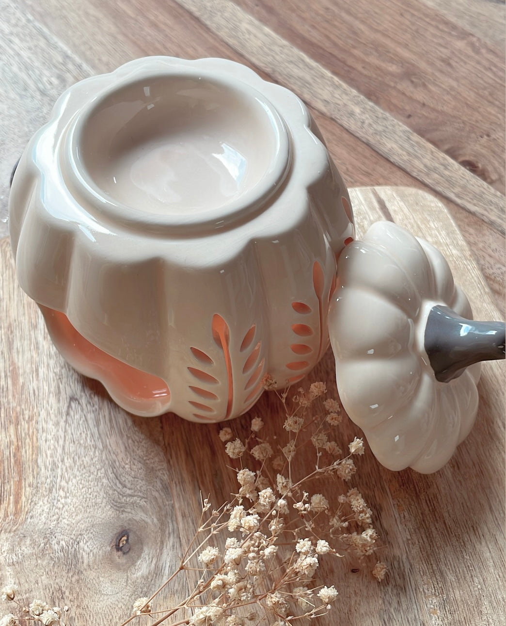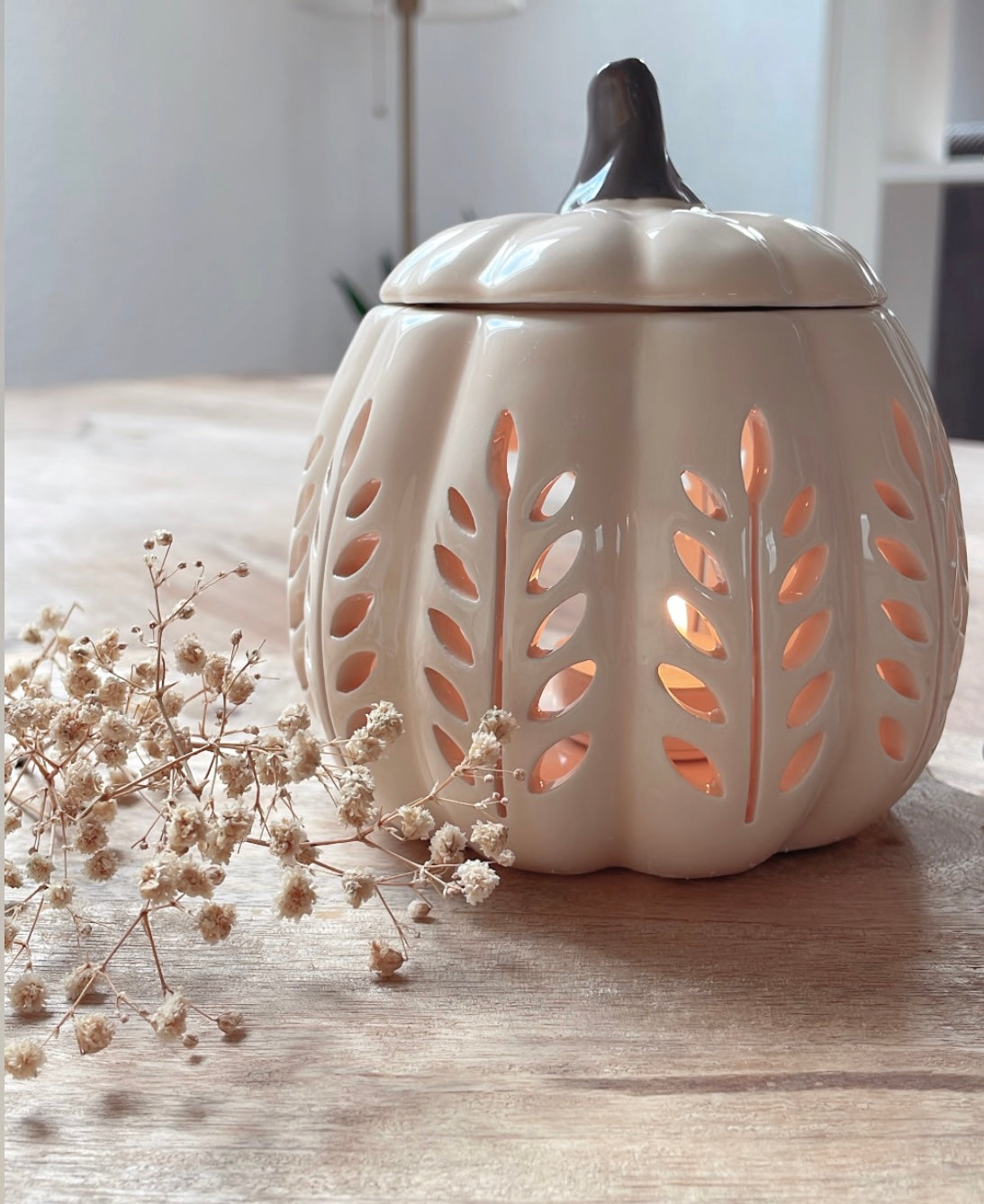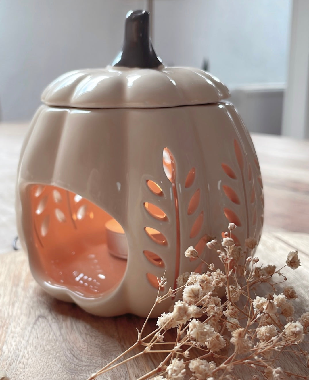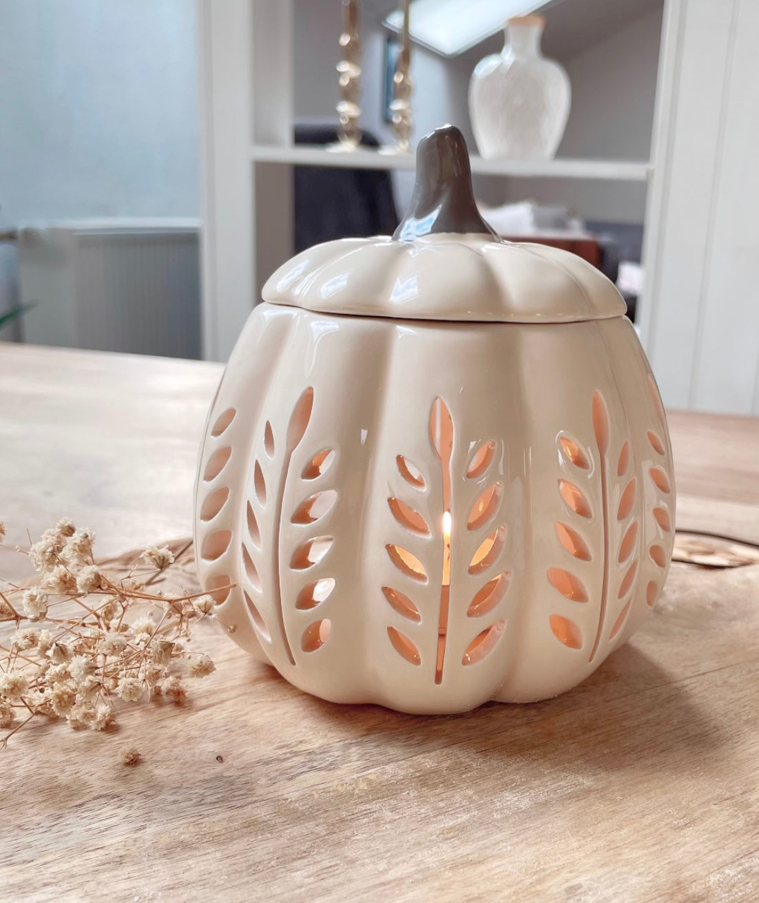 Diese hübsche Duftlampe ist das perfekte Herbstdekor für dein zu Hause. Der Kürbis hat kleine Ausschnitte und sorgt so für ein sanftes Durchschimmern des Lichts. Der Deckel des Kürbis ist abnehmbar, so kann das Wachs in die Brennschale gelegt werden. Er ist Teil der Autumn Days Kollektion und perfekt für gemütliche Herbstabende und ein stimmungsvolles Licht.