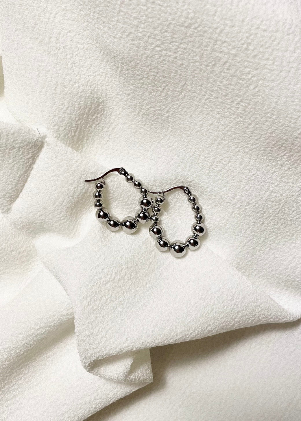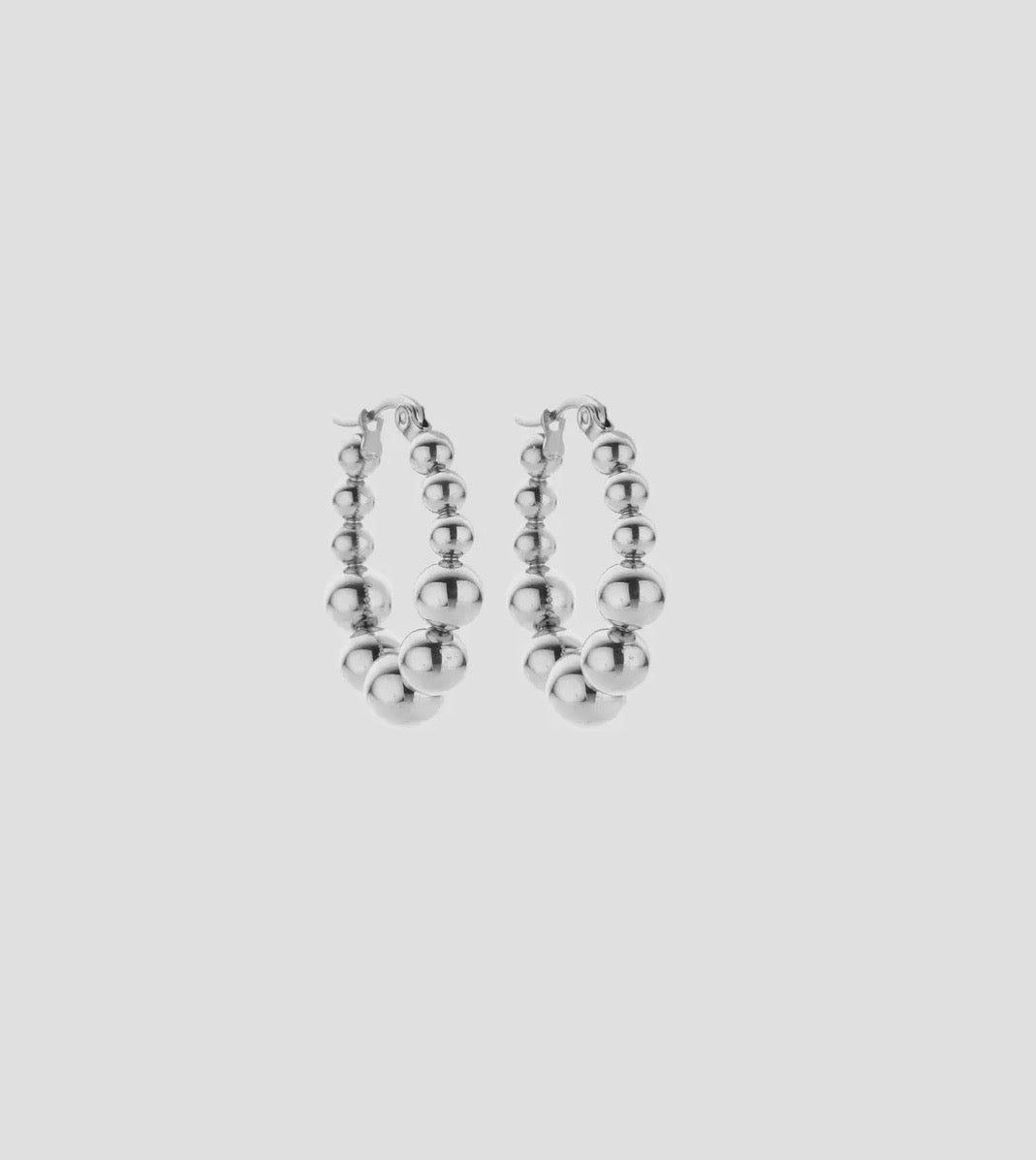 Mit diesen Kugel Creolen fällst du sicherlich auf und gibst deinem Outfit den perfekten Charm! Die sehr edle und schicke Edelstahl Creolen im Kugel Design werten jedes schlichte Outfit auf oder sorgen für einen besonderen Look. Sie sind oval geformt und einfach zu öffnen und schließen per Klick. Die Kugeln sind in kleine und größer werdende Kugeln aneinander gereiht.