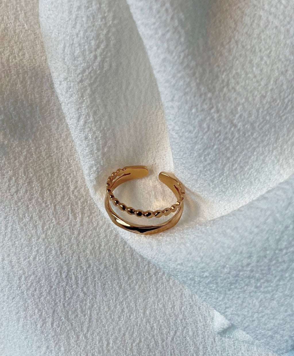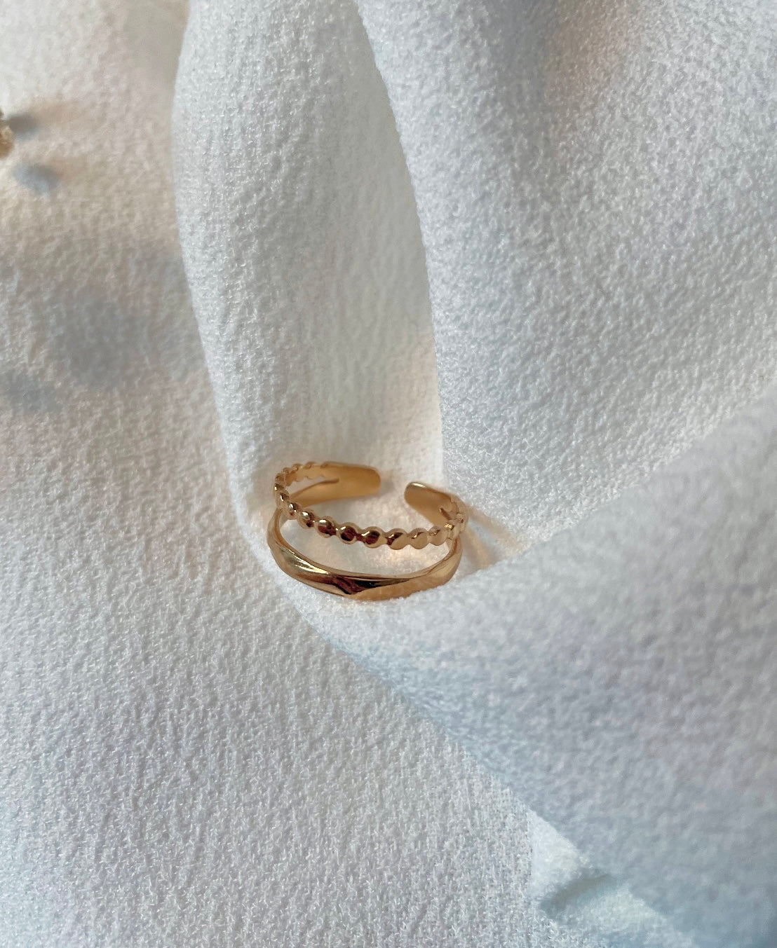 Der Edelstahlring ist dezent, fein in zwei Reihen gearbeitet und eine perfektes Alltags Accessoire. Eine Reihe besteht aus leicht asymmetrischen Edelstahl, eine weitere Reihe aus kleinen Edelstahlkügelchen. Der Ring ist Grössenverstellbar und lässt somit unkompliziert an deine Ring Größe anpassen.